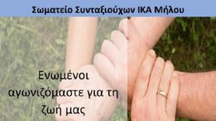 Το Σωματείο Συνταξιούχων ΙΚΑ Μήλου συνυπογράφει, μαζί με τα άλλα σωματεία της Ομοσπονδίας Συνταξιούχων ΙΚΑ Ελλάδας το υπόμνημα διαμαρτυρίας προς τον Υ...