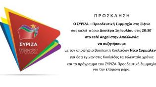Προεκλογική εκδήλωση του ΣΥΡΙΖΑ – Προοδευτική Συμμαχία στη Σύρο, παρουσία των υποψήφιων βουλευτών του κόμματος στις Κυκλάδες και κεντρικό ομιλητή τον ευρωβουλευτή Κ. Αρβανίτη