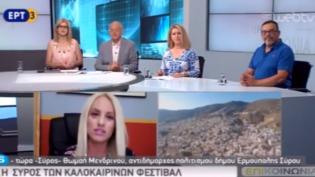 Η Σύρος των Φεστιβάλ και των πλούσιων εκδηλώσεων αναδείχθηκε μέσα από την τηλεοπτική εκπομπή της ΕΡΤ3 ''ΕπιΚΟΙΝΩΝΙΑ'' στην ΕΡΤ3. Καλεσμένη ήταν η Α...