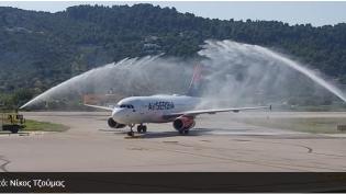 Θεαματική υποδοχή με αψίδες νερού επιφυλάχθηκε στα δύο πρώτα αεροπλάνα που προσγειώθηκαν με διαφορά δέκα λεπτών σήμερα λίγο μετά τις 10 το πρωί στο αε...
