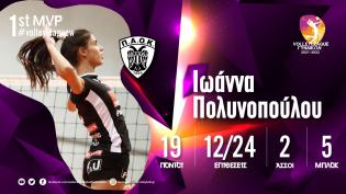 Η Ιωάννα Πολυνοπούλου του Π.Α.Ο.Κ. είναι η MVP της 1ης αγωνιστικής του πρωταθλήματος της Volley League Γυναικών 2021-2022. Η διεθνής κεντρική του δ...
