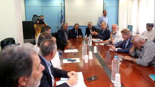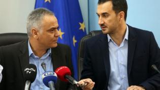 Ο Υπουργός Εσωτερικών, Πάνος Σκουρλέτης και ο Υπουργός Υποδομών και Μεταφορών, Χρήστος Σπίρτζης, μαζί με τον Γενικό Γραμματέα Εμπορίου και Προστασίας ...