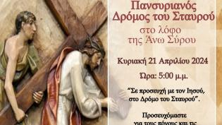 Ανακοίνωση για τη διεξαγωγή του Πανσυριανού Δρόμου του Σταυρού στην Άνω Σύρο, εξέδωσε η Καθολική Επισκοπή Σύρου. Σύμφωνα με την ανακοίνωση, ο Δρόμο...
