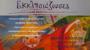 Τις “Εκκλησιάζουσες” του Αριστοφάνη παρουσιάζει απόψε στο Θέατρο “Απόλλων”, η Θεατρική Ομάδα του Ιδιωτικού Σχολείου “Ο Άγιος Γεώργιος” σε διασκευή της...