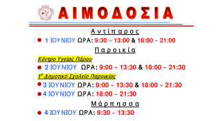 Ο Σύλλογος Εθελοντών Αιμοδοτών Πάρου - Αντιπάρου, διοργανώνει για τον μήνα Ιούνιο αιμοδοσία και στα δύο νησιά. Πατώντας πάνω στη φωτογραφία μπορεί...