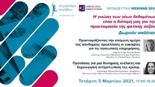 Την Τετάρτη 3 Μαρτίου 2021, ώρες 17.00-19.00 θα πραγματοποιηθεί το πρώτο ΔΩΡΕΑΝ webinar με θέμα «Η γνώση των νέων δεδομένων είναι η δύναμή μας για την...