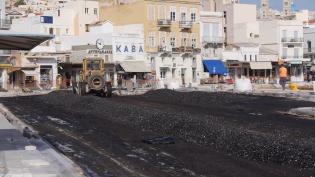 Με εντατικούς ρυθμούς συνεχίζουν οι εργασίες στο παραλιακό μέτωπο της Ερμούπολης και σε επίπεδο ρίψης πίσσας, με το πρώτο στρώμα να έχει ήδη ολοκληρωθ...