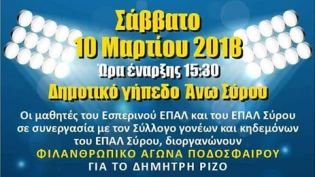 Το Επαγγελματικό Λύκειο Σύρου και το Γενικό Λύκειο Σύρου συνδιοργανώνουν Φιλανθρωπικό Αγώνα Βόλεϊ κοριτσιών, το Σάββατο 17/12/2022 και ώρα 18.30μμ στη...