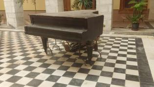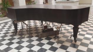 Νέα υποστυλώματα συγκρατούν πλέον το πιάνο – αντίκα που απέκτησε μέσω δωρεάς ο Δήμος Σύρου – Ερμούπολης και τοποθέτησε στο αίθριο του Δημαρχιακού Μεγά...