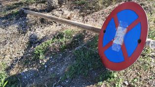 Πεταμένη στα βράχια βρίσκεται πινακίδα του ΚΟΚ στην Αζόλιμνο, η οποία για άγνωστους λόγους αποκόπηκε από τη βάση της και πετάχτηκε σε τμήμα του παραλι...