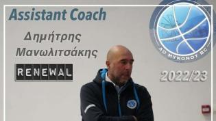 Στον Α.Ο. Μυκόνου θα παραμείνει και τη νέα αγωνιστική περίοδο στη Β΄ Εθνική ο Δημήτρης Μανωλιτσάκης, ο οποίος θα βρεθεί δίπλα στοιν Γιάννη Τζήμα ως β...