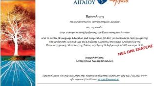 Την Τρίτη 21 Φεβρουαρίου 2023, πραγματοποιήθηκε επίσημη τελετή βράβευσης του Πανεπιστημίου Αιγαίου από το Center of Language Education and Cooperation...