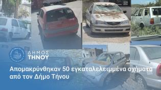 Ο Δήμος Τήνου ολοκλήρωσε, τον μήνα Νοέμβριο, μια εκτεταμένη επιχείρηση απομάκρυνσης εγκαταλελειμμένων οχημάτων από δρόμους, κοινόχρηστους χώρους και δ...