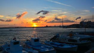 Ηλιοβασίλεμα στο λιμάνι της Τήνου με φόντο τη Σύρο Κώστας Καλούδης
