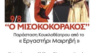 Το λαϊκό αμοραλιστικό παραμύθι “Μισοκοκοράκος” από το “Εργαστήρι Μαιρηβή” παρουσιάζεται απόψε στις 20:30, στο Θέατρο στον Κουμάρο, στο πλαίσιο του Φεσ...