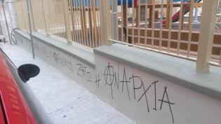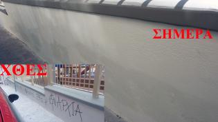 Σε μπαλώματα της τελευταίας στιγμής προχώρησαν υπάλληλοι του τεχνικής υπηρεσίας του δήμου Σύρου - Ερμούπολης στους φρεσκοβαμμένους τοίχους της Παιδική...