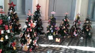 Μία «νότα» Χριστουγέννων, προσδίδουν στο Δημαρχιακό Μέγαρο της Ερμούπολης, τα χριστουγεννιάτικα δέντρα, στολισμένα από τους μαθητές των σχολείων της π...