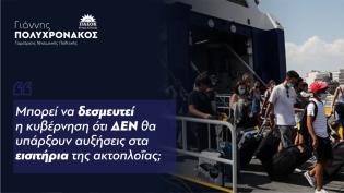 Γ. Πολυχρονάκος: "Μπορεί να δεσμευτεί η κυβέρνηση ότι δεν θα υπάρξουν αυξήσεις στα εισιτήρια της ακτοπλοΐας;"