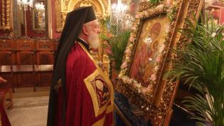 Στον Ιερό Μητροπολιτικό Ναό της Μεταμορφώσεως του Σωτήρος, στην Ερμούπολη, όπου φυλάσσεται από το 1955 η θαυματουργή εικόνα της Παναγίας της Φανερωμέν...