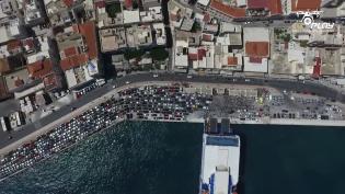 Σε βίντεο, που τραβήχτηκε από τηλεχειριζόμενη κάμερα (drone), η οποία "πέταξε" πάνω από το λιμάνι, την ώρα της αναχώρησης του μεσημβρινού δρομολογίου,...