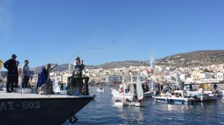 Ο Γιάννης Μακρυθανάσης ανέσυρε τον Τίμιο Σταυρό κατά τον φετινό Αγιασμό των υδάτων στο λιμάνι της ηλιόφωτης Ερμούπολης, παρουσία των τοπικών αρχών και...