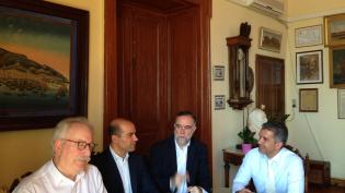 Προγραμματισμένη συνάντηση εργασίας πραγματοποιήθηκε σήμερα, Παρασκευή 8 Μαΐου 2015, μεταξύ του Δημάρχου Σύρου – Ερμούπολης κ. Γιώργου Μαραγκού και τω...