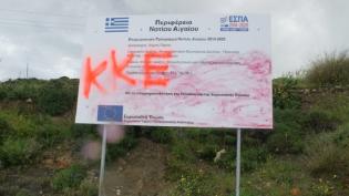 ΚΟΒ Πάρου του ΚΚΕ: Καταγγέλλουμε τους προβοκάτορες που έβαψαν την πινακίδα