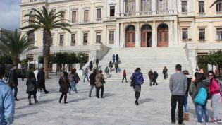 Στην εκκένωση του Δημοτικού Μεγάρου στην πλατεία Μιαούλη προχωρούν οι άνδρες της Ασφάλειας της Αστυνομίας Σύρου μετά από τηλεφώνημα για πιθανή τοποθέτ...