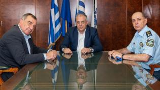 Ο Υπουργός Προστασίας του Πολίτη Τάκης Θεοδωρικάκος συναντήθηκε σήμερα με τον Δήμαρχο Θήρας – Σαντορίνης Αντώνη Σιγάλα. Παρουσία του αρχηγού της Ελλην...