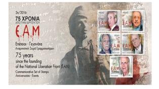 Τα Ελληνικά Ταχυδρομεία τιμούν τη συμπλήρωση των 75 χρόνων από την ίδρυση του Εθνικού Απελευθερωτικού Μετώπου, απεικονίζοντας σε γραμματόσημα πέντε αγ...