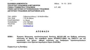 Στη Διαύγεια αναρτήθηκε με σημερινή ημερομηνία (14/10/2019) η απόφαση του Υπουργού Υποδομών Μεταφορών και Δικτύων, Κωνσταντίνου Καραμανλή για τη δέσμε...