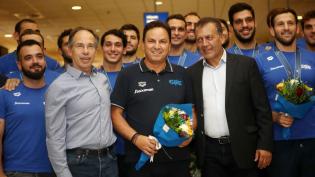Την Εθνική ομάδα υδατοσφαίρισης των ανδρών που κατέκτησε το ασημένιο μετάλλιο στο Παγκόσμιο Πρωτάθλημα στη Φουκουόκα, υποδέχτηκε τα ξημερώματα της Δευ...