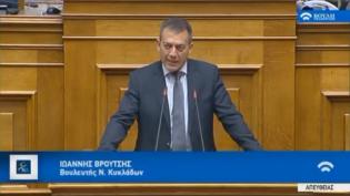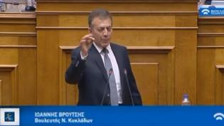Ομιλία του βουλευτή Κυκλάδων, Γιάννη Βρούτση στη Βουλή, στο πλαίσιο της οποίας τόνισε πως, "5 εκατ. Έλληνες θίγονται από τις ολέθριες περικοπές που φέ...
