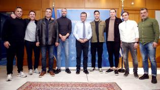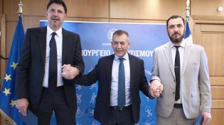 Ο αναπληρωτής Υπουργός Αθλητισμού, Γιάννης Βρούτσης και ο Υπουργός Ψηφιακής Διακυβέρνησης, Δημήτρης Παπαστεργίου, παρέδωσαν στους προέδρους των Super ...