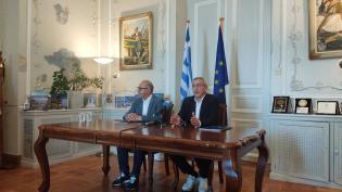 Αναφορά στα γενικά συμπεράσματα της μελέτης του ΕΛΚΕΘΕ από τον Περιφερειάρχη Ν. Αιγαίου στη συνέντευξη Τύπου στη Σύρο