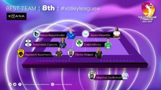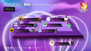 Στην καλύτερη επτάδα της 9ης αγωνιστικής συμπεριλήφθηκε η Έρικα Μερκάδο του Α.Ο. θήρας. Η διαγώνιος της ομάδας της Σαντορίνης σημείωσε συνολικά 19 πόν...