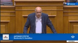 Τοποθέτηση Αντώνη Συρίγου, Βουλευτή Κυκλάδων ΣΥ.ΡΙΖ.Α., στην Ολομέλεια της Βουλής των Ελλήνων κατά τη συζήτηση επί της προτάσεως του Πρωθυπουργού για ...
