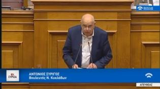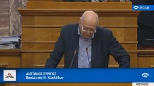 Ομιλία Αντώνη Συρίγου, βουλευτή Κυκλάδων του ΣΥ.ΡΙΖ.Α., στην Ολομέλεια της Βουλής κατά την συζήτηση και ψήφιση του σχεδίου νόμου «ΚΛΕΙΣΘΕΝΗΣ I» για τη...