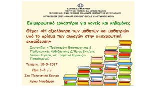 Επιμορφωτικό εργαστήριο για γονείς και κηδεμόνες με θέμα «Η αξιολόγηση των μαθητών και μαθητριών υπό το πρίσμα των αλλαγών στην υποχρεωτική εκπαίδευση...