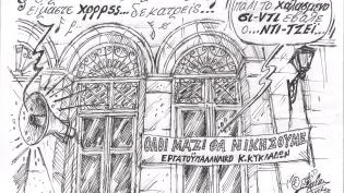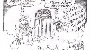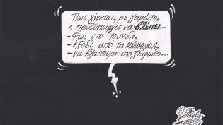 Σκίτσο του Τάκη Χάλαρη με θέμα: "Με κλειστά και ανοιχτά"
