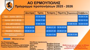 Η διοίκηση του Α.Ο. Ερμούπολης, με ανακοίνωσή της, έκανε γνωστό το πρόγραμμα προπονήσεων τόσο των αγωνιστικών τμημάτων, όσο και των υποδομών. Οι πρ...