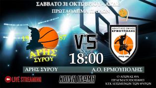 Παρακολουθήστε από το κλειστό γυμναστήριο της Σύρου τον αγώνα μπάσκετ της κατηγορίας παίδων μεταξύ του Άρη Σύρου και του ΑΟ Ερμούπολης.