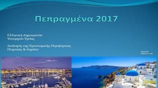 Τον απολογισμό πεπραγμένων, για το έτος 2017, εξέδωσε η 2η Υγειονομική Περιφέρεια Πειραιώς και Αιγαίου, η οποία είναι αρμόδια και για τις μονάδες υγεί...