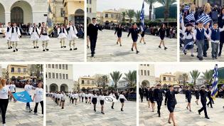 Με τιμή και δόξα η παρέλαση στην πλατεία Μιαούλη, η οποία "πλημμύρισε" από γαλανόλευκες σημαίες της μαθητιώσας νεολαίας