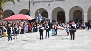 Την επέτειο της 25ης Μαρτίου τίμησαν σήμερα το απόγευμα οι μαθητές, οι σπουδαστές και οι πρόσκοποι της Σύρου, συμμετέχοντας στη στεφάνωση για την εθνι...