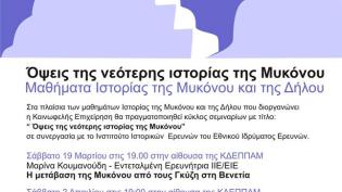Οι σημαντικότερες στιγμές της νεότερης ιστορίας της Μυκόνου από την κυριαρχία των Ενετών αδελφών Ανδρέα και Ιερεμία Γκύζη μέχρι την προσάρτησή της στη...