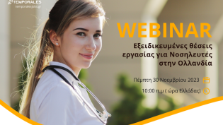 Το ΔΙΕΚ Νοσοκομείου Σύρου και η εταιρεία TEMPORALES διοργανώνουν παρουσίαση στις 30 Νοεμβρίου (10.00 ώρα Ελλάδας) σχετικά με θέσεις νοσηλευτών ή βοηθών νοσηλευτών στην Ολλανδία. …