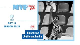 Ο πασαδόρος του Ολυμπιακού Κώστας Στιβαχτής αναδείχτηκε πολυτιμότερος αθλητής MVP Βίκος Cola στη 14η αγωνιστική του πρωταθλήματος Volley League ανδρών...