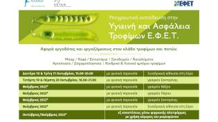 Σεμινάρια Υγιεινής και Ασφάλειας Τροφίμων ΕΦΕΤ Οκτωβρίου - Νοεμβρίου 2022