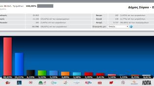 Λίγο μετά τις έντεκα και μισή το βράδυ ολοκληρώθηκε η καταμέτρηση των αποτελεσμάτων στα 36 εκλογικά τμήματα της Σύρου, με τον ΣΥΡΙΖΑ να προηγείται της...